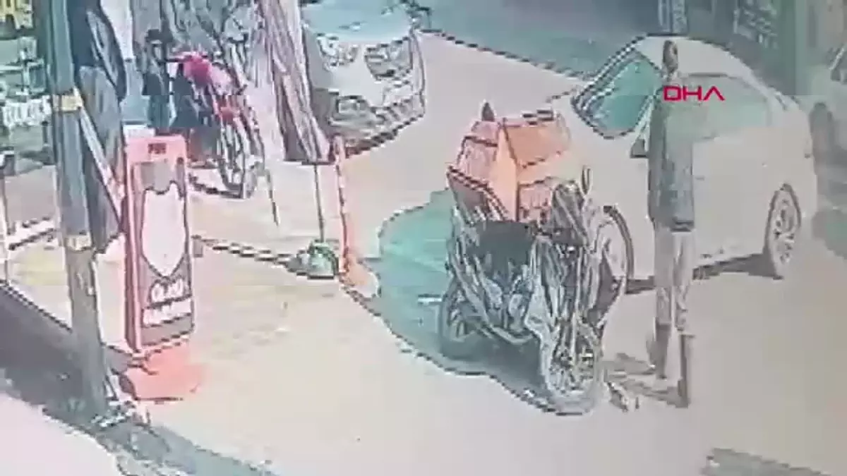 BURSA’da, otomobil ile motosikletin çarpıştığı kaza güvenlik kamerasına yansıdı. Motosikleti ile otomobil arasına sıkışan kuryenin yardımına çevredekiler koştu.